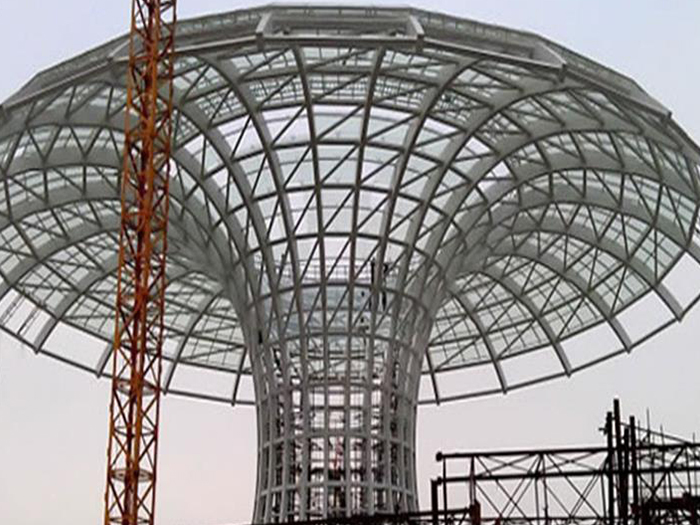 二、球形网架结构因其结构新颖,受力合理,自重轻、用钢量低等优点。如大型体育场馆球形贵港螺栓球网架、公共场馆球形网架、电厂贵港螺栓球网架、水泥工业球形网架、仓储物流球形网架、贵港干煤棚工业球形网架、贵港收费站贵港加油站球形网架、展览中心、影剧院、商场、航站楼、候车厅、工厂贵港车间、仓库、电视塔等球形螺栓球节点网架。国内球形网架结构主要分为:贵港焊接球节点网架及螺栓球节点网架两种。螺栓球节点网架其构件工厂内加工量较大,现场安装便捷,适用于现场工期紧,贵港施工条件、用电量受制约,网架形状复杂、贵港杆件定位困难的异形结构。螺栓球节点球形网架系统基本由贵港杆件、螺栓球、支撑支座等组成。按照节点形式可分为交叉贵港桁架体系、四角锥体系、三角锥体系等。支撑方式多为固定支座支撑。对于大面积、大跨度及有特殊受力或伸缩要求的网架结构可采用橡胶支座、滑移支座、球铰支座等支撑形式,以满足结构自身的受力稳定、均衡,便于内力释放等设计要求。